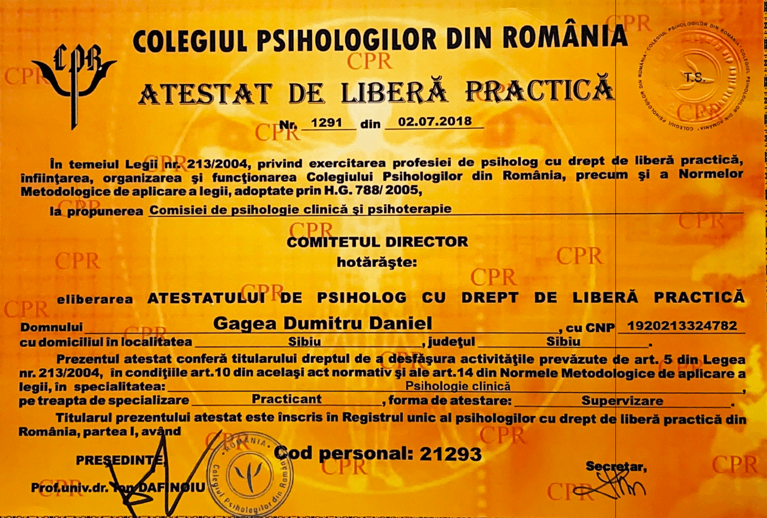 atestat in psihologie clinica